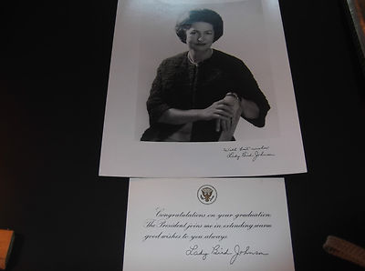 Title (ebay affiliate link): Lady Bird Johnson photo and card. "Congratulations on your graduation."
