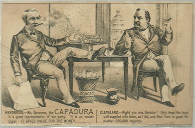 CAPADURA CIGARS, GROVER CLEVELAND, HENDRICKS POLITICAL TRADE CARD