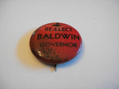 Old Political Pinback Connecticutt Baldwin for Governor Sharp pin!