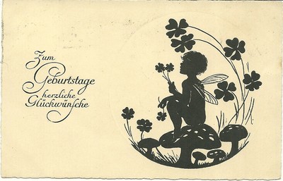 Title (ebay affiliate link): Fairy sitting on a toadstool. silhouette. P.Pittius