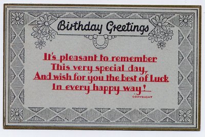 Title (ebay affiliate link): Remember this Very Special Day vintage Raphael Tuck Birthday Greetings Postcard