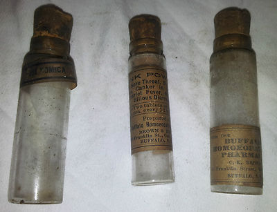 Title (ebay affiliate link): Glass Pharmacy Medication Bottles - Pre-1920s(?) - Lot of 3 - Buffalo, NY