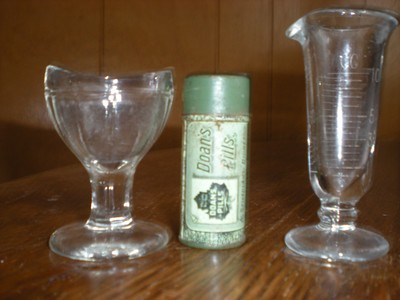 Title (ebay affiliate link): ANTIQUE/VINTAGE MEDICINE MEASURING VIAL, EYE WASH GLASS, DOAN'S PILLS CAN