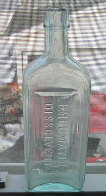 Title (ebay affiliate link): Mouth blown 1880's-1890's Aqua Embossed Dr.Kennedys Rheumatic Dessolvent Bottle