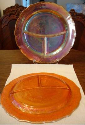 Title (ebay affiliate link): Normandie Iridescent Depression Glass Grill Plates (2)