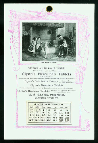Title (ebay affiliate link): c1901 GLYNN'S HERCULEAN TABLETS Calendar, Vermont, Apothecary, Druggist, NR