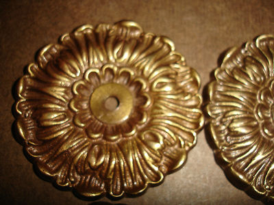 ANTIQUE KEELER BRASS FLOWER MEDALLION BACKPLATE FURNITURE HARDWARE VINTAGE LOT 6