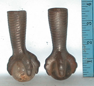 Antique Table Leg Claw Feet W glass ball. A254