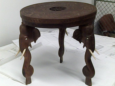 ANTIQUE HAND CARVED TABLE with ELEPHANT LEGS