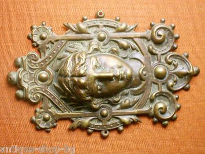 Title (ebay affiliate link): Vintage Woman Face Ornament Cooper Bronze Wonderful Patina Baroque style 100year