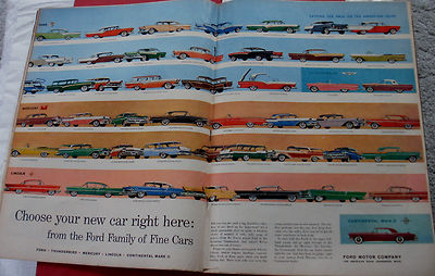 Title (ebay affiliate link): FORD FAMILY OF CARS 1957 Original Ad Double Page w/staple holes at center crease