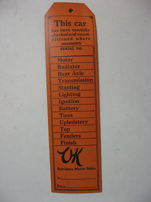 Title (ebay affiliate link): CHEVROLET OK USED CAR CHECK LIST TAG 1920S,30S,&40S