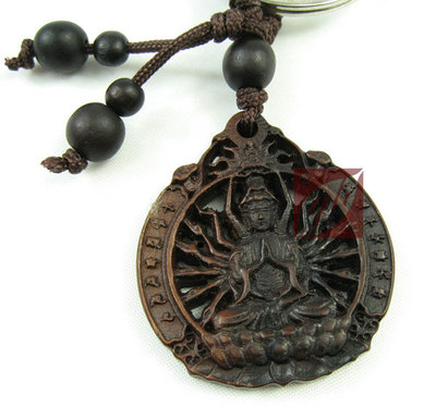 Title (ebay affiliate link): Ebony Wood Carving Chinese Buddha Thousand Hand Guanyin Statue Amulet Key Chain