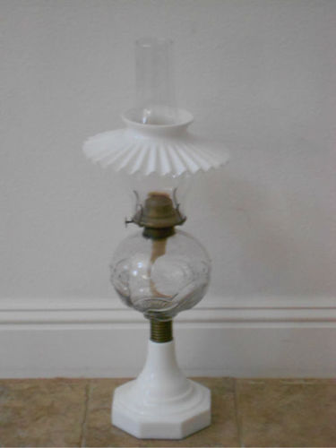 Vintage Milk Glass Oil Lamp With Pleated Shade