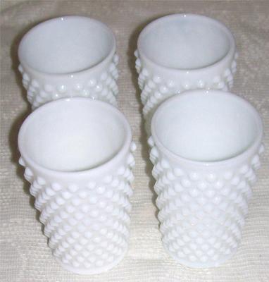 4- FENTON MILKGLASS HOBINAIL TUMBLERS STYLE GLASSES