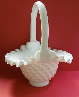 FENTON HOBNAIL MILK GLASS RUFFLED CRIMPED BASKET