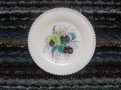 Title (ebay affiliate link): Westmoreland Milk Glass Hobnail Plate Fruit Motif Blackberries Replacement