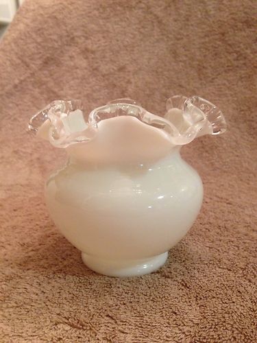 Fenton Silver Crest Milk Glass Double Crimp Vase