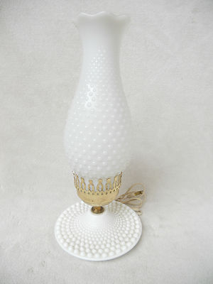 Title (ebay affiliate link): Vintage White Milk Glass Hurricane English Hobnail Bedside Table Lamp