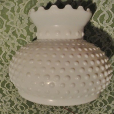 Title (ebay affiliate link): White Milk Glass Hobnail Student Lamp Shade 7" H x 8" W Ruffle Top