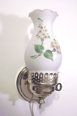 Title (ebay affiliate link): Vtg Cottage Electric Wall Sconce Lamp Milk Glass Shade Hand Painted Pink Floral
