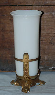 Vintage Milk Glass Catholic Church VOTIVE CANDLE Holder Gargoyle Cast Metal Base