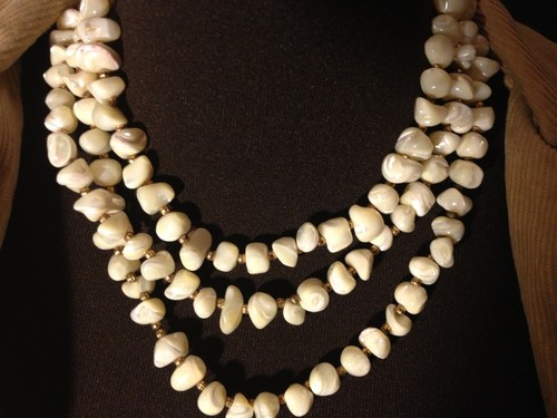 Title (ebay affiliate link): Vintage Swirled Milk Glass Necklace W/ Goldtone Flower Clasp 26" Unique&Pretty!!