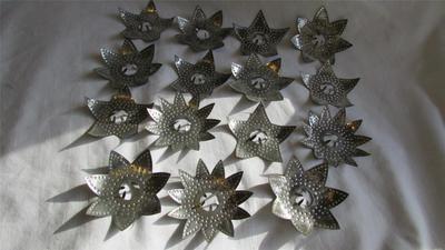 Title (ebay affiliate link): Christmas Diamond Ray Punched Tin Star Flower Light Reflectors Primitive Barn