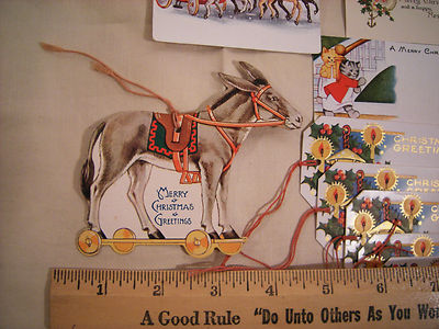 Title (ebay affiliate link): 10 VINTAGE UNUSED 1920 CHRISTMAS GIFT TAGS DIE CUT TOY DONKEY COACH HOLLY LAMP