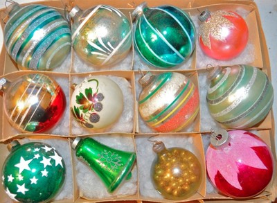 Title (ebay affiliate link): 12 VINTAGE asstd GERMANY +shiny brite frost top CHRISTMAS ORNAMENTS