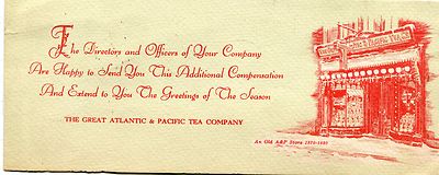 c1930 A & P Grocery Store Christmas Card Bonus Atlantic & Pacific Tea Company