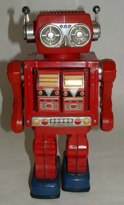 1960s VINTAGE TIN BATTERY OPERATED RED 11 1/2 INCH.ROBOT