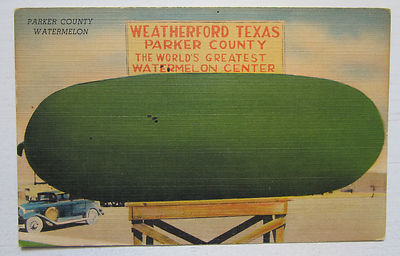 Title (ebay affiliate link): Weatherford Texas TX Parker County Watermelon Unused Vintage Linen Postcard