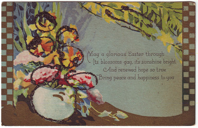 Vintage Easter Greetings Postcard,Early 1900s Peace and Happiness to You Glitter
