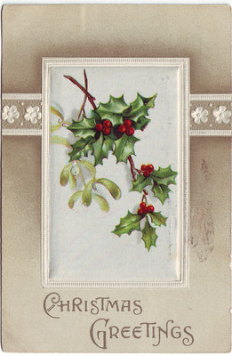 Vintage Christmas Postcard,Early 1900s Christmas Greetings 1911 Fabric Cover