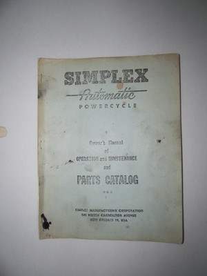 Title (ebay affiliate link): OLD SIMPLEX SERVI-CYCLE AUTOMATIC "M" MOTORCYCLE OPERATORS MAINTENANCE MANUAL