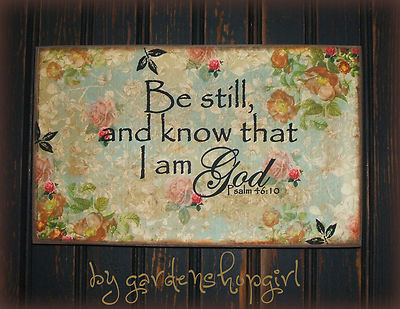 Title (ebay affiliate link): Be Still and Know that I Am God French Country Bible Verse Shabby Wood Sign Chic