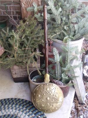 Title (ebay affiliate link): Primitive Vintage Brass Bed Warmer Perfect Fireplace Hearth or Bedroom Decor