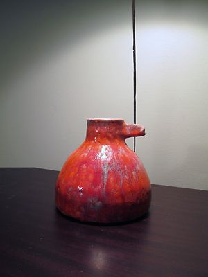 Title (ebay affiliate link): OLD PRIMITIVE CLAY POTTERY BIRD HOUSE ORANGE GRAY DRIP GLAZE