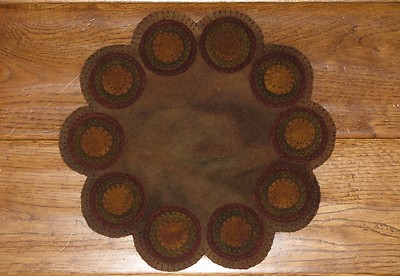 Primitive Wool Penny Rug ~ Handstitched ~ Scalloped Edges ~ Earth Tone Colors