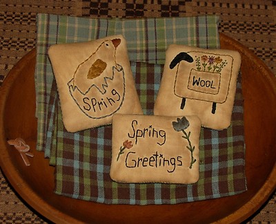Title (ebay affiliate link): Primitive Stitchery Hanger Ornaments ~ Set of 3 ~ Easter/Spring ~ Sheep &Chick