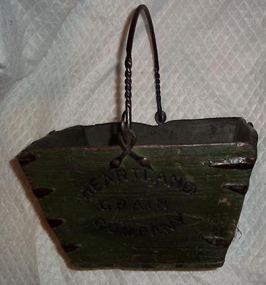 Title (ebay affiliate link): Wooden farm grain bin/bucket advertising stamped darkgreen old?with handle