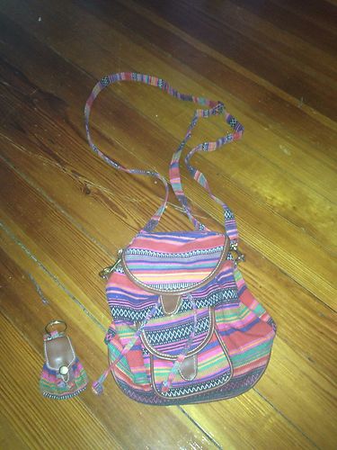 Vintage 93 Gitano Crazy Colorful Striped Backpack/Crossbody Purse W/ Key Chain
