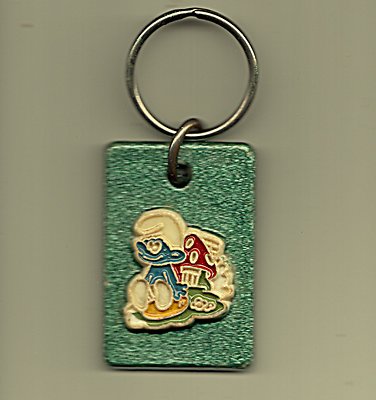 Title (ebay affiliate link): SMURF Key Tag Fob KeyChain Ring vintage vtg cartoon character blue elf gnome
