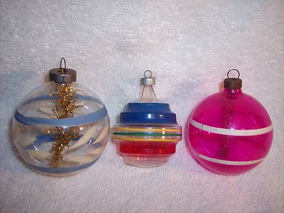 VINTAGE 1940'S WWII ERA UNSILVERED TINSEL GLASS CHRISTMAS TREE ORNAMENTS