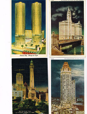 4 Card Lot, Chicago, Illinois at Night, Tribune Tower, Palmolive, Wrigley!!