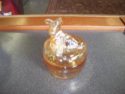 Title (ebay affiliate link): DEPRESSION GLASS IRADESCENT SCOTTY DOG COVERED POWDER JAR
