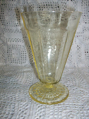 Title (ebay affiliate link): Vintage Depression Pale Yellow Water Drinking Glass Goblet Vase Princess
