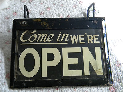 Title (ebay affiliate link): **ANTIQUE** Vintage Glass Door Sign - "Come in, We're OPEN" - hanger for door