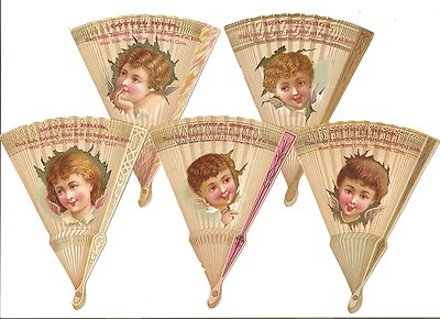 5 Fan with Angel Diecut Trade Cards Lowell Bros. Norwich, Conn. Circa 1890
